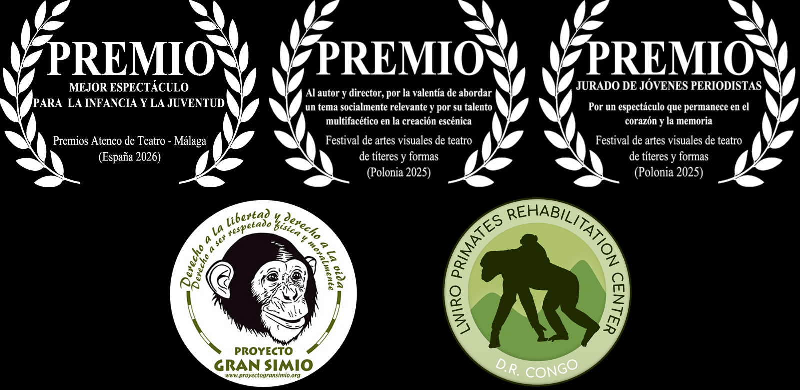La organización Lwiro Primate Rehabilitation Center, situada en la República Democrática del Congo, está dedicada al rescate y rehabilitación de chimpancés víctimas de la caza y el tráfico ilegal. Actualmente cuida a más de un centenar de chimpancés y a un centenar de monos de 14 especies diferentes, además de otros animales. El CRPL apoya nuestro espectáculo, y es un gran honor para nosotros recibir el respaldo de esta prestigiosa organización. Haz clic aquí para visitar su web.